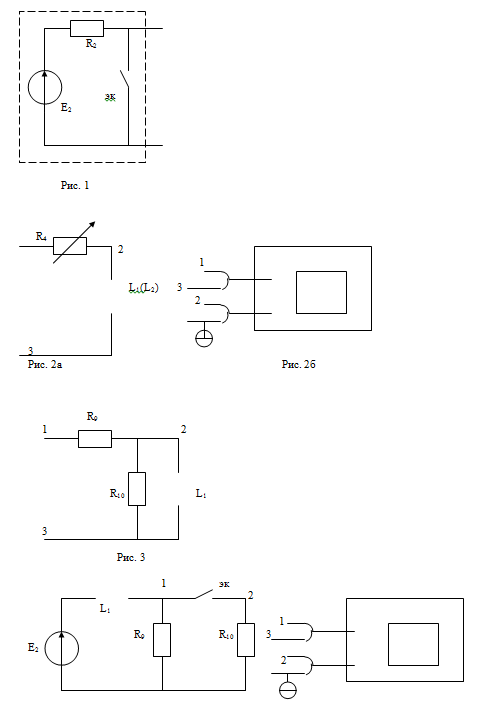 • Элементы и приборы: Резисторы: R9=1 кОм, R10=1 кОм, R2=2 ОмБлок переменного сопротивления R4 = 1- 999 Ом. Катушки индуктивности L1, L2 с активными сопротивлениями Rк1, Rк2. Источник постоянного напряжения с регулируемой ЭДС: Е2 =0-24В с внутренним сопротивлением Rвт = 2 Ом. Двухканальный осцилограф.