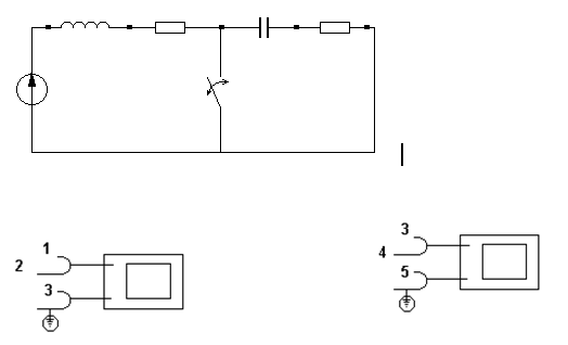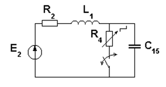 • Элементы и приборы: Источник постоянного напряжения с регулируемой ЭДС Е2 = 0-24 В. С внутренним сопротивлением Rвт=2 Ом; электронный ключ с частотой коммуникации f=50 Гц; резистор R2 =50 Ом; блок переменного сопротивления R4 =1 – 999 Ом; резисторы R2=50 Ом, R3=100 Ом, R 6=300 Ом, катушка индуктивности L1 с активным сопротивлением Rк1; конденсатор C15 = 1 мкФ; двухканальный осциллограф.