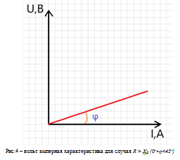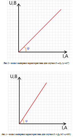1.1. Для установки соотношений R = XС, R < XС, R > XС необходимо сравнить значения на V1 и на V2. Для случая, когда R = XС (рис.2), показания вольтметров должны быть равны. Для случая, когда R < XС (рис.3), показания V1 должны быть меньше показаний V2. Для случая, когда R > XС (рис.4), показания V1 должны быть больше показаний V2.