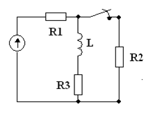 1. Качественно проанализировать переходный процесс. Е=100 В, R1=20 Ом, R2=10 Ом R3=5 Ом, L=0,2 Гн. Записать уравнение для переменной состояния после коммутации.
