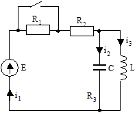 Дана электрическая цепь, в которой происходит коммутация (Рис. 1). В цепи действует постоянная ЭДС Е. Требуется определить закон изменения во времени токов и напряжений после коммутации в ветвях схемы.