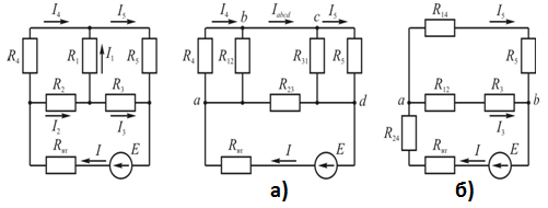 (R4, R2, R1) или (R5, R3, R1) в эквивалентную звезду.