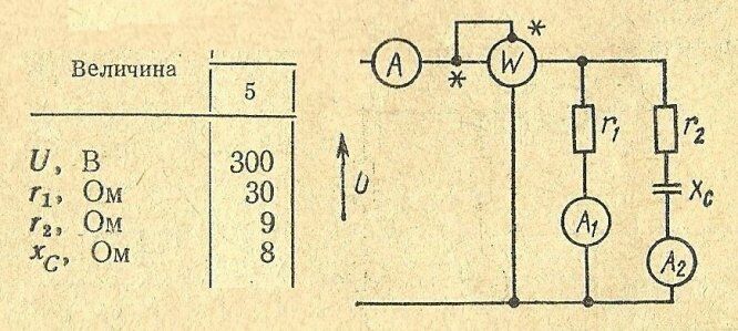 Главная » Учебные материалы » Теоретические основы электротехники (ТОЭ) » Решения задач » Несколько классов/семестров » В сеть переменного тока напряжением U включена цепь, состоящая из двух параллельных ветвей с сопротивлениями r1, r2 и xc (данные ниже). Определить показания приборов, реактивную мощность цепи, построить векторную диаграмму