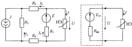 Главная » Учебные материалы » Теоретические основы электротехники (ТОЭ) » Решения задач » Несколько классов/семестров » Вольтамперная характеристика нелинейного элемента, входящего в состав разветвленной цепи, аппроксимирована аналитическим выражением U=A+BI+CI2. Рассчитать токи.
