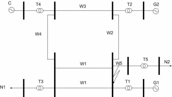 Погонное сопротивление всех линий электропередачи x0=0,4 ом/км, линия W1-двухцепная, остальные одноцепные.