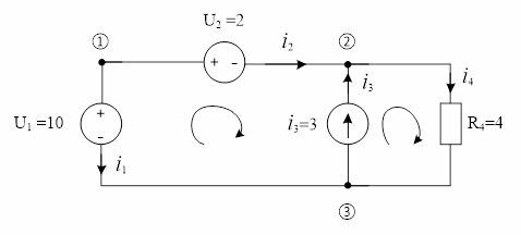Цепь: 113- ИН u1=10; 212- ИН u2=2; 332- ИТ i3=3; 423- R4=4