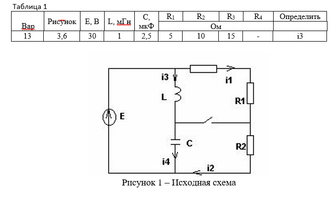 Задание 1.1. Дана электрическая цепь, в которой происходит коммутация (рис.3.10). В цепи действует постоянная ЭДС Е. Параметры цепи приведены в табл.1. Определить закон изменения во времени указанной в таблице величины (тока или напряжения).