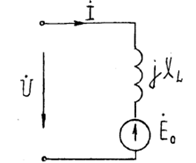 Схема замещения фазы синхронного двигателя содержит противо-ЭДС, индуктивное сопротивление XL. Найти значение ЭДС E0, активной мощности P, потребляемой двигателем из сети, если cos(φ)=1, U = 660 В, XL = 9.75 Ом, а вектор E0 отстает от вектора U на угол ϴ = 30 °