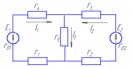 Для разветвленной цепи (рис.1, табл.1), используя метод эквивалентных преобразований, принцип суперпозиции, закон Ома и законы Кирхгофа, определить токи во всех ветвях