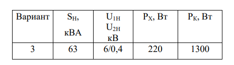Задача: В таблице приведены паспортные данные трехфазного трансформатора: