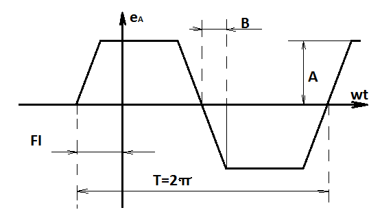 Разложить в ряд Фурье несинусоидальную периодическую ЭДС фазы А. Для дальнейших расчётов использовать первые три гармоники