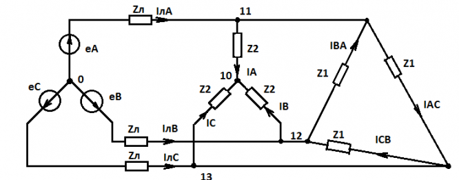 3. Определить показания заданных в расчётной схеме приборов: амперметров, ваттметра и вольтметра. Все измерительные приборы электромагнитной системы.