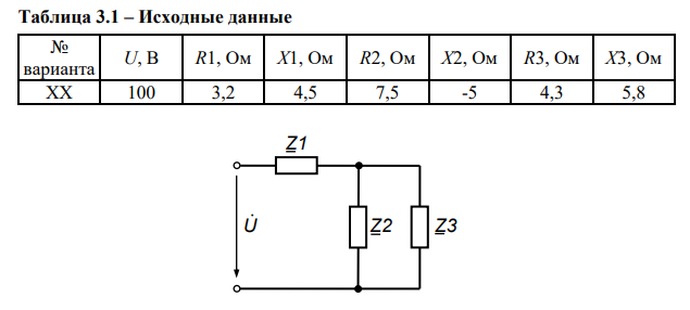 Задача: В цепи (рис. 3.1.) активные и реактивные сопротивления соответственно равны: R1, X1; R2, X2; R3, X3.