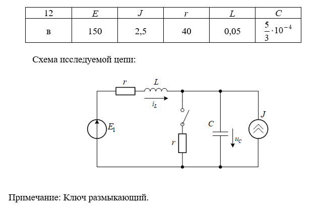 Определить законы изменения во времени токов и напряжений, указанных на схеме стрелками. Построить временные зависимости рассчитанных токов и напряжений. Определить постоянную времени цепи.