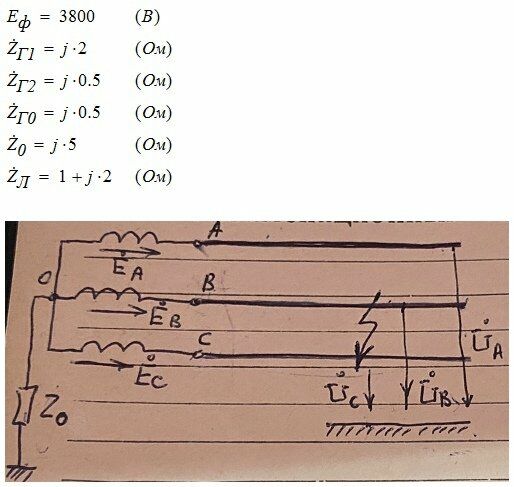 Для студентов ИГЭУ им. Ленина по предмету Теоретические основы электротехники (ТОЭ)В конце незагруженной линии замкнулись фазы B и C. Определить токи в линииВ конце незагруженной линии замкнулись фазы B и C. Определить токи в линии
