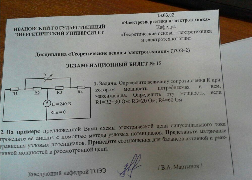 Для студентов ИГЭУ им. Ленина по предмету Теоретические основы электротехники (ТОЭ)Определите величину сопротивления R при котором мощность, потребляемая в нем, максимальна. Определить эту мощность, если R1=R2=30 Ом; R3=20 Ом; R4=60 Определите величину сопротивления R при котором мощность, потребляемая в нем, максимальна. Определить эту мощность, если R1=R2=30 Ом; R3=20 Ом; R4=60