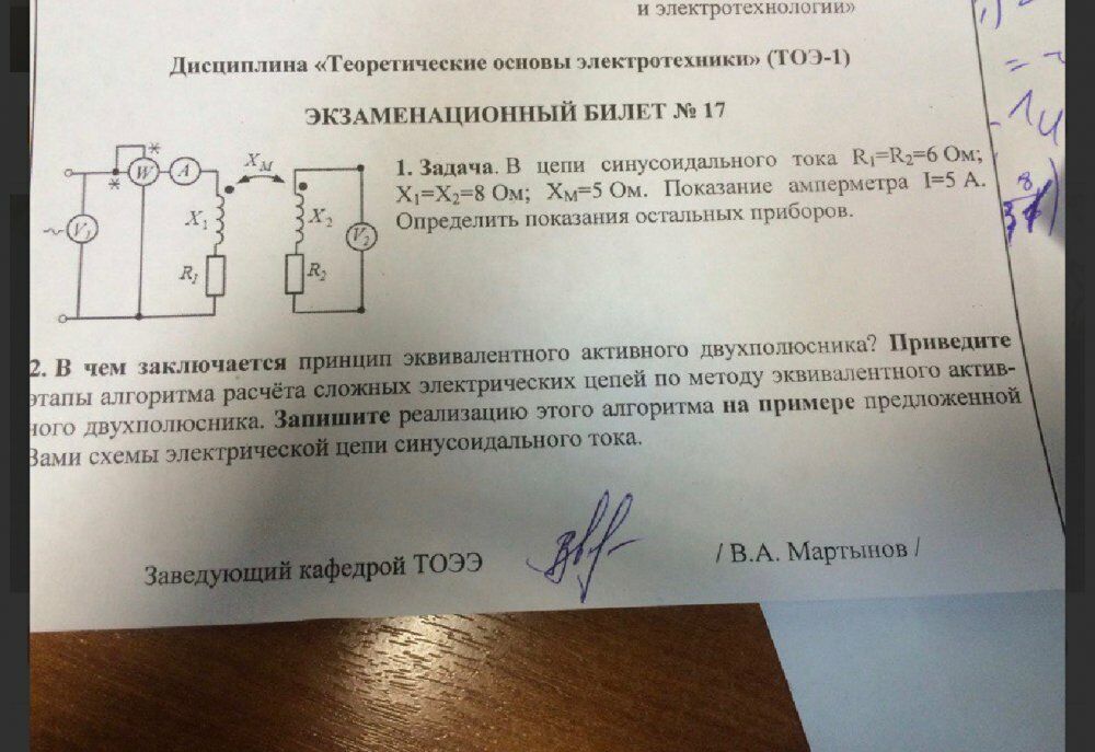 Для студентов ИГЭУ им. Ленина по предмету Теоретические основы электротехники (ТОЭ)В цепи синусоидального тока R1=R2=6 Ом, X1=X2=8 Ом; Хм=5 Ом. Показание амперметра I=5 А. Определить показания остальных приборов.В цепи синусоидального тока R1=R2=6 Ом, X1=X2=8 Ом; Хм=5 Ом. Показание амперметра I=5 А. Определить показания остальных приборов.