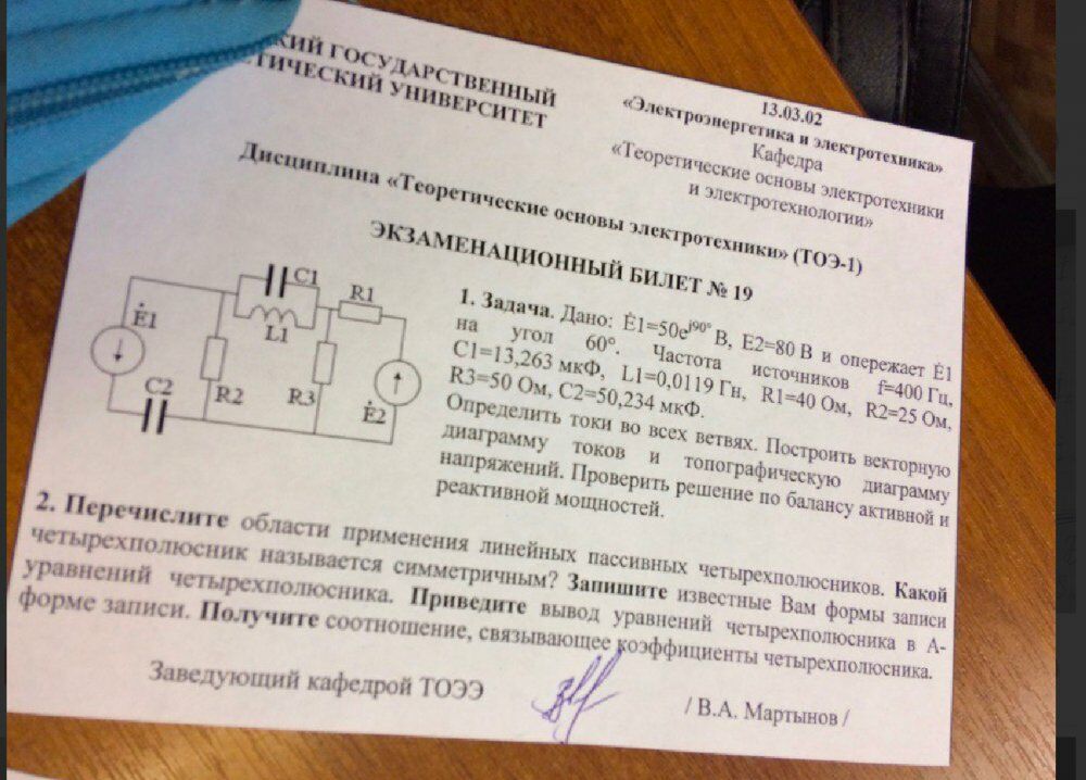 Для студентов ИГЭУ им. Ленина по предмету Теоретические основы электротехники (ТОЭ)E1=50ej90° В, Е2=80 В и опережает E1 на угол 60°. Частота источников C1=13,263 мкФ, L1=0,0119 Гн, R1=40 Ом, R2=25 Ом, R3=50 Ом, С2=50,234 мкФ. ОпределE1=50ej90° В, Е2=80 В и опережает E1 на угол 60°. Частота источников C1=13,263 мкФ, L1=0,0119 Гн, R1=40 Ом, R2=25 Ом, R3=50 Ом, С2=50,234 мкФ. Определ