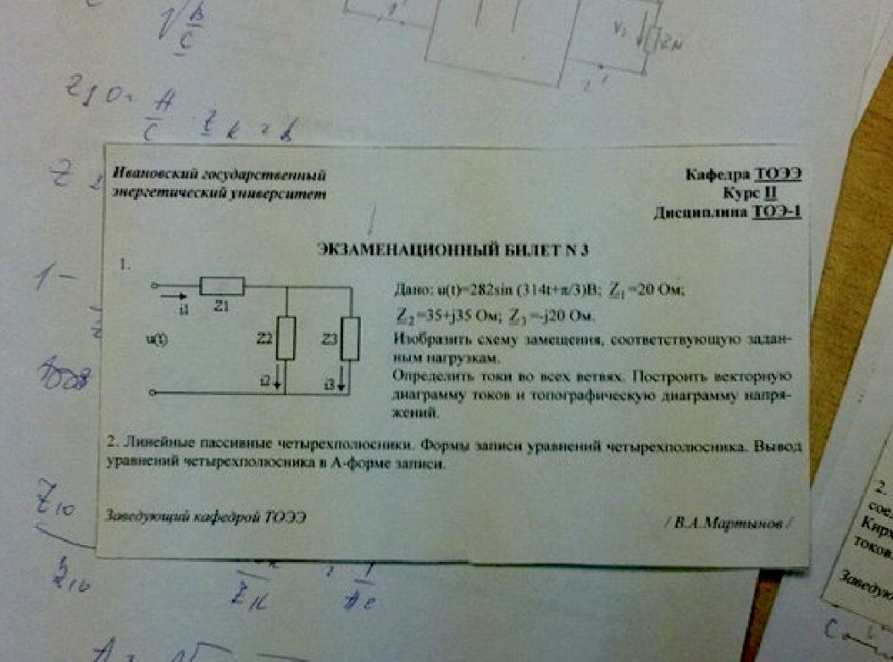 Главная » Учебные материалы » Теоретические основы электротехники (ТОЭ) » Решения задач » ИГЭУ им. Ленина » 4 семестр » Номер 1 » Вариант 3 » Изобразить схему замещения, соответствующую заданным нагрузкам. Определить токи во всех ветвях. Построить векторную диаграмму токов и топографическую диаграмму напряжений.