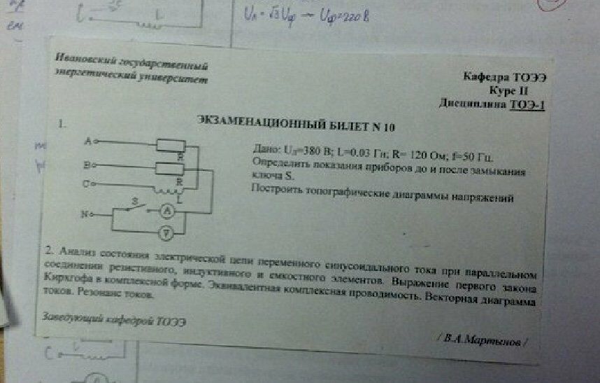 Главная » Учебные материалы » Теоретические основы электротехники (ТОЭ) » Решения задач » ИГЭУ им. Ленина » 4 семестр » Номер 1 » Вариант 10 » Uл=380 В; L=0,03 Гн; R=120 Ом; f=50Гц. Определить локальная приборов до и после замыкания ключа S. Построить топографические диаграммы напряжений.