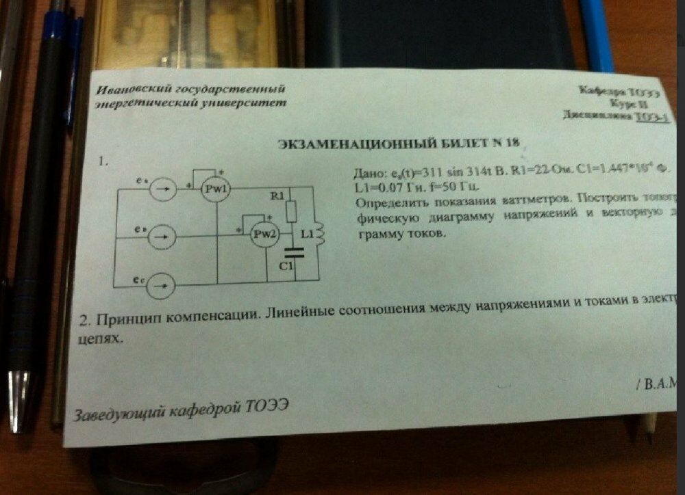 Для студентов ИГЭУ им. Ленина по предмету Теоретические основы электротехники (ТОЭ)Определить показания ваттметров. Построить топографическую диаграмму напряжений и векторную диаграмму токовОпределить показания ваттметров. Построить топографическую диаграмму напряжений и векторную диаграмму токов
