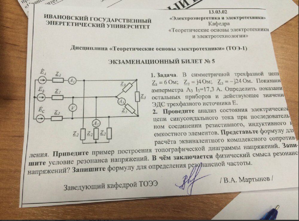 Для студентов ИГЭУ им. Ленина по предмету Теоретические основы электротехники (ТОЭ)В симметричной трехфазной цепи, Z1=6 Ом; Z2=j4 Ом; Z3=-j24 Ом. Показания амперметра А3 I3=17,3 А. Определить показание остальных приборов и действующеВ симметричной трехфазной цепи, Z1=6 Ом; Z2=j4 Ом; Z3=-j24 Ом. Показания амперметра А3 I3=17,3 А. Определить показание остальных приборов и действующе