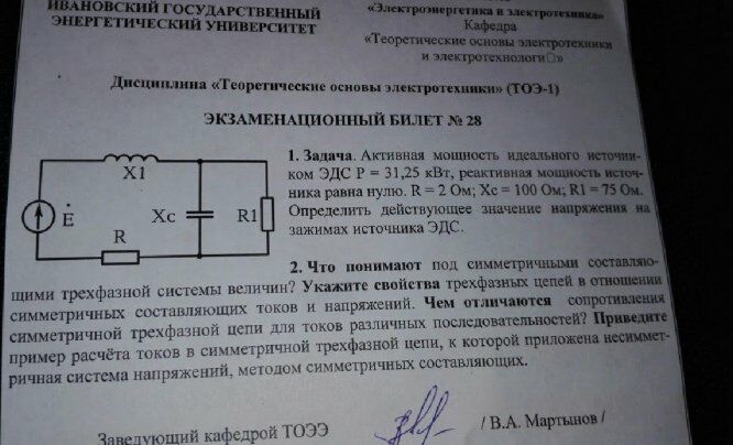 Для студентов ИГЭУ им. Ленина по предмету Теоретические основы электротехники (ТОЭ)Активная мощность идеального источником ЭДС Р = 31,25 кВт, реактивная мощность источ- ника равна нулю. R = 2 Ом; Xc = 100 Ом; R1 = 75 Ом. Определить дАктивная мощность идеального источником ЭДС Р = 31,25 кВт, реактивная мощность источ- ника равна нулю. R = 2 Ом; Xc = 100 Ом; R1 = 75 Ом. Определить д