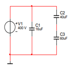 Задача №1 Рассчитать напряжение на каждом конденсаторе. С1 = 16 мкФ, С2 = 40 мкФ, С3 = 60 мкФ, U = 400 В