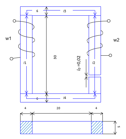 Задача: На рисунке 4 показана магнитная цепь с двумя обмотками