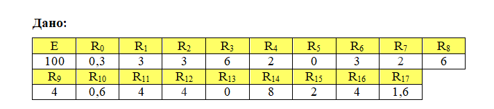ЗАДАЧА 1. Для электрической цепи с параметрами, заданными в таблице 1 определить эквивалентное (входное) сопротивление относительно зажимов источника питания и ток в ветви источника питания.