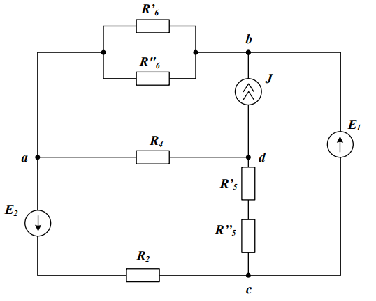Для электрической цепи (Рис 1) Полагая, что в цепи с постоянными токами и напряжениями индуктивность имеет нулевое сопротивление, а ёмкость – нулевую проводимость, изобразить схему. Преобразовать схему до трёх контуров, заменив ветви с параллельными и последовательными соединениями резисторов на эквивалентные. Выбрать направления токов в ветвях схемы. В общем виде составить полную систему уравнений состояния цепи по законам Кирхгофа. Методом контурных токов определить токи всех ветвей и напряжение на источнике тока. Методом узловых потенциалов определить токи всех ветвей и напряжение на источнике тока. Составить баланс мощностей. Представить схему относительно ветви с R4 эквивалентным генератором и определить параметры Uxx, Rг, Iкз. Графически и аналитически определить ток в R4. Построить потенциальную диаграмму для любого замкнутого контура, не содержащего источника тока. Результаты расчётов свести в таблицу и сравнить между собо