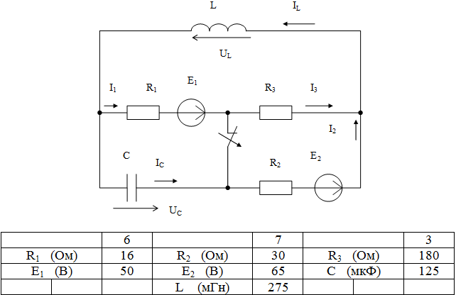 Определить все токи и напряжения на реактивных элементах при переходном процессе классическим методом. Построить графики тока через L и C и напряжений на L и C при переходном процессе.