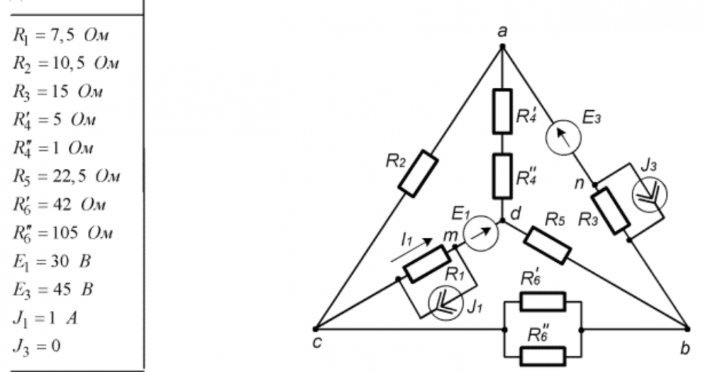 Задача 1.1: Линейные электрические цепи постоянного тока вариант 19