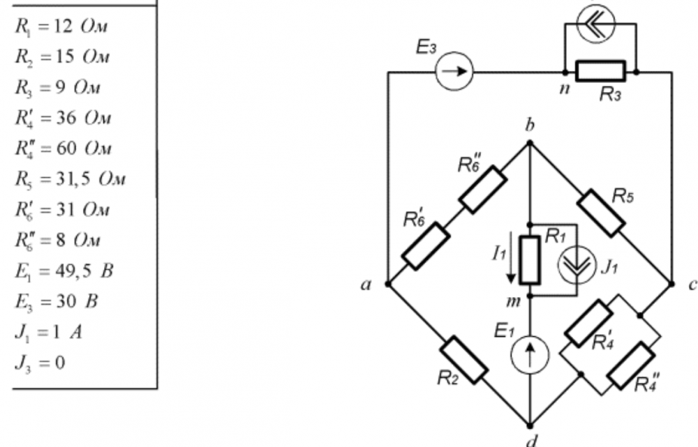 Задача 1.1: Линейные электрические цепи постоянного тока вариант 20
