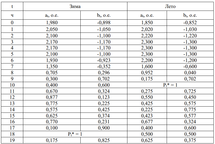 4) Коэффициенты at зим(лет) и bt зим(лет) , зависящие от сезона, района, в котором расположена система, и времени суток (см. таблицу 1).