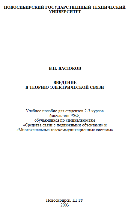Для студентов НГТУ по предмету Теории электрической связи (ТЭС)Васюков В.Н. - Введение в ТЭСВасюков В.Н. - Введение в ТЭС