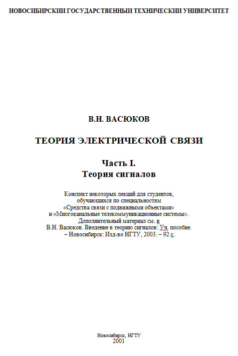 Для студентов НГТУ по предмету Теории электрической связи (ТЭС)Васюков В.Н. - Теория электрическо связи - Часть 1. Теория сигналовВасюков В.Н. - Теория электрическо связи - Часть 1. Теория сигналов