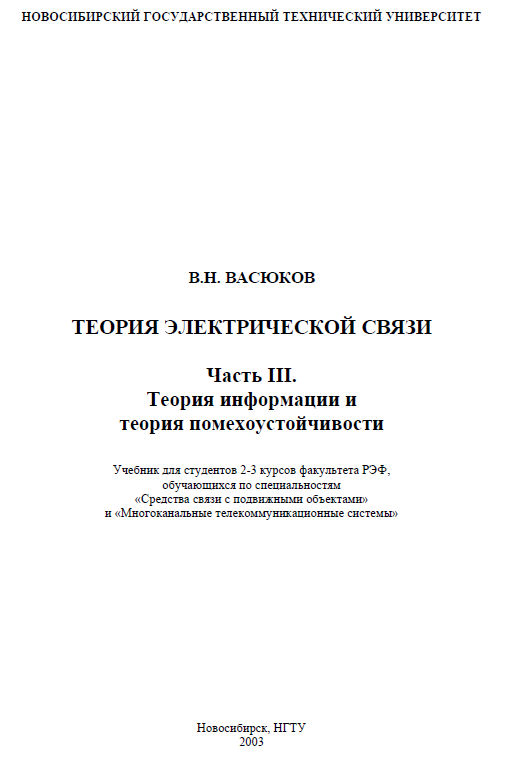 Для студентов НГТУ по предмету Теории электрической связи (ТЭС)Васюков В.Н. - Теория электрическо связи - Часть 3. Теория информации и теория помехоустойчивостиВасюков В.Н. - Теория электрическо связи - Часть 3. Теория информации и теория помехоустойчивости