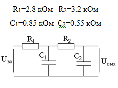 - Найти сигнал, который получается из заданного при воздействии RC – фильтра НЧ, построить временной график полученного сигнала.