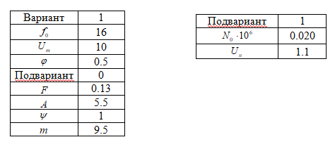 Модулированные колебания- Несущее гармоническое колебание, имеющее амплитуду Um, В, частоту f0, Гц, и начальную фазу фи, рад модулируется по амплитуде гармоническим колебанием, имеющим частоту F, амплитуду A и начальную фазу пси (все параметры даны в таблице).