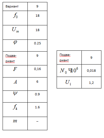 Модулированные колебания- Несущее гармоническое колебание, имеющее амплитуду Um, В, частоту f0, Гц, и начальную фазу фи, рад модулируется по амплитуде гармоническим колебанием, имеющим частоту F, амплитуду A и начальную фазу пси (все параметры даны в таблице).