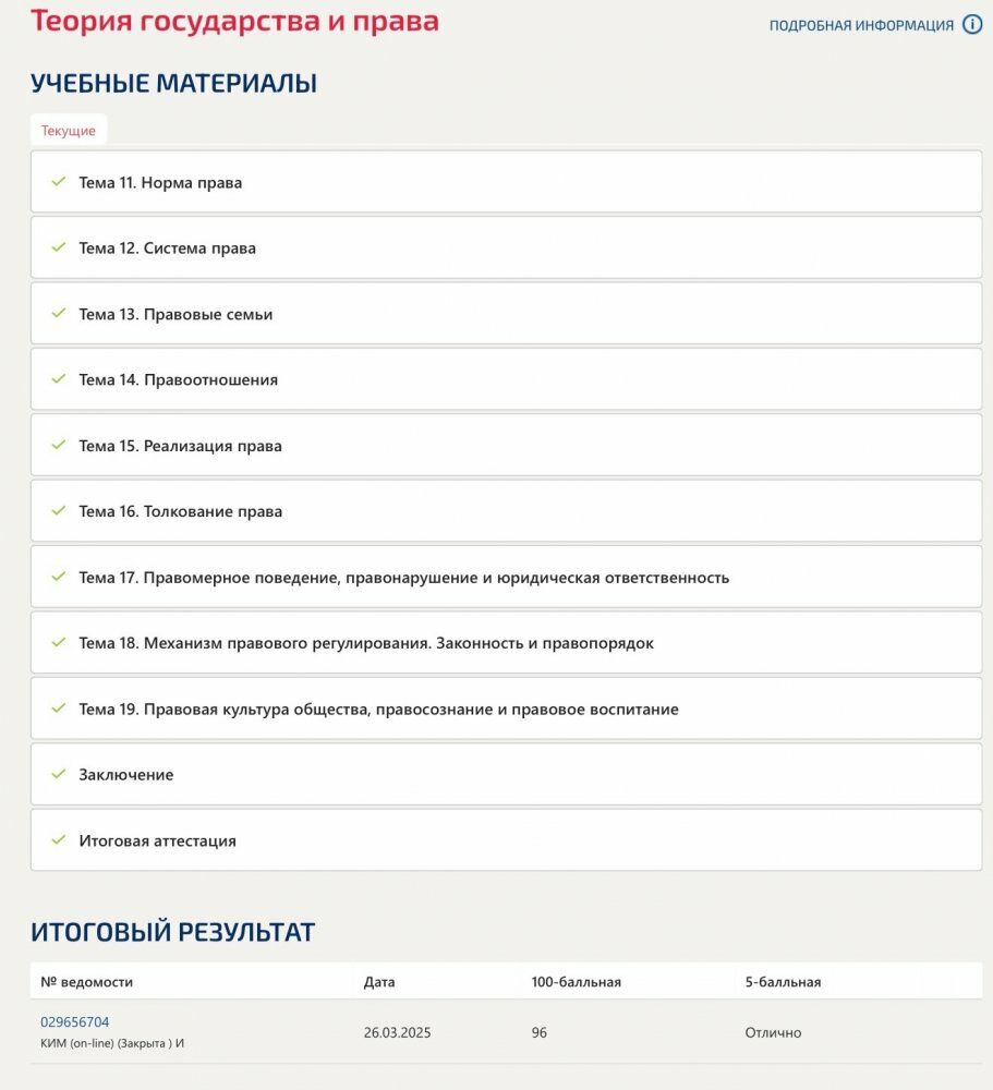 Ответы на все промежуточные и итоговые тесты по Теории государства и права для Синергии