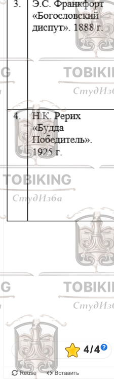 Рублев «Троица» 2«Мохаммед и Архангел Гавриил». 1595 г. Автор неизвестен 3Э.С. Франкфорт «Богословский диспут». 1888 г. 4Н.К. Рерих «Будда Победитель». 1925 г.  .