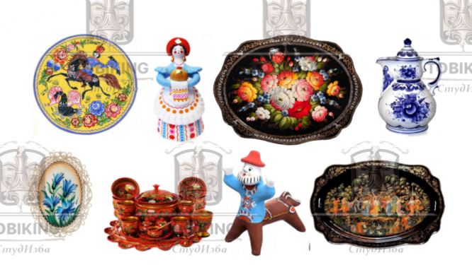 Решите филворд на тему «Виды художественных промыслов России». Рассмотрите иллюстрации изделий и определите названия техник, в которых они выполнены.  .
