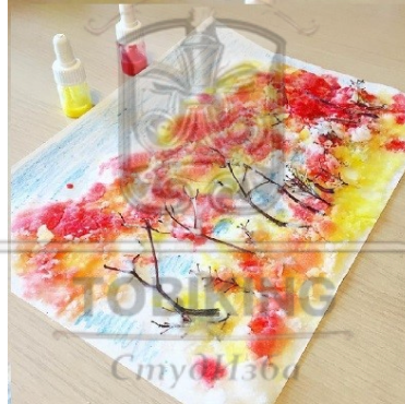 Названия техник выберите в выпадающем списке. Обратите внимание, что задание содержит фальш-ответы («лишние» названия техники исполнения рисования). Примеры работ Техника исполнения рисования                   .