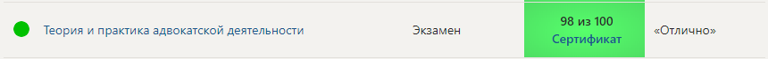 Теория и практика адвокатской деятельности Тест на 98% Отлично!