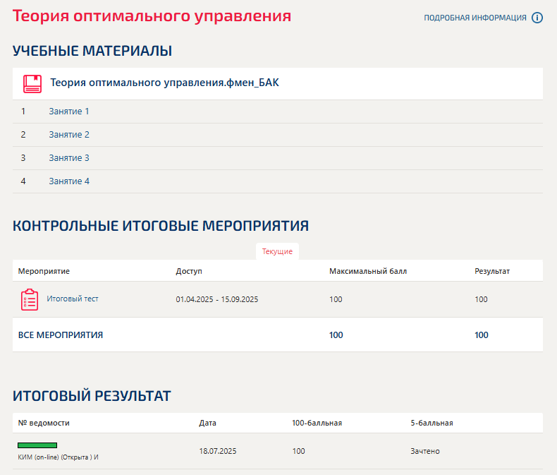 Теория оптимального управления (Занятие 1-4) Синергия Ответы на итоговый тест