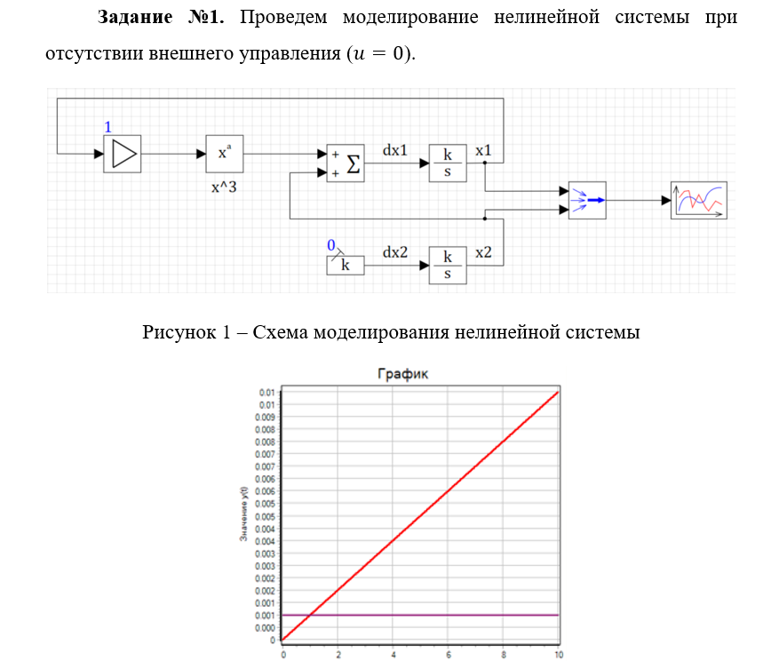 Отчёт по лабораторной работе №3 по теории управления нелинейных систем "Линеаризация обратной связью по состоянию". Работа выполнена в программе SimInTech, 3 вариант