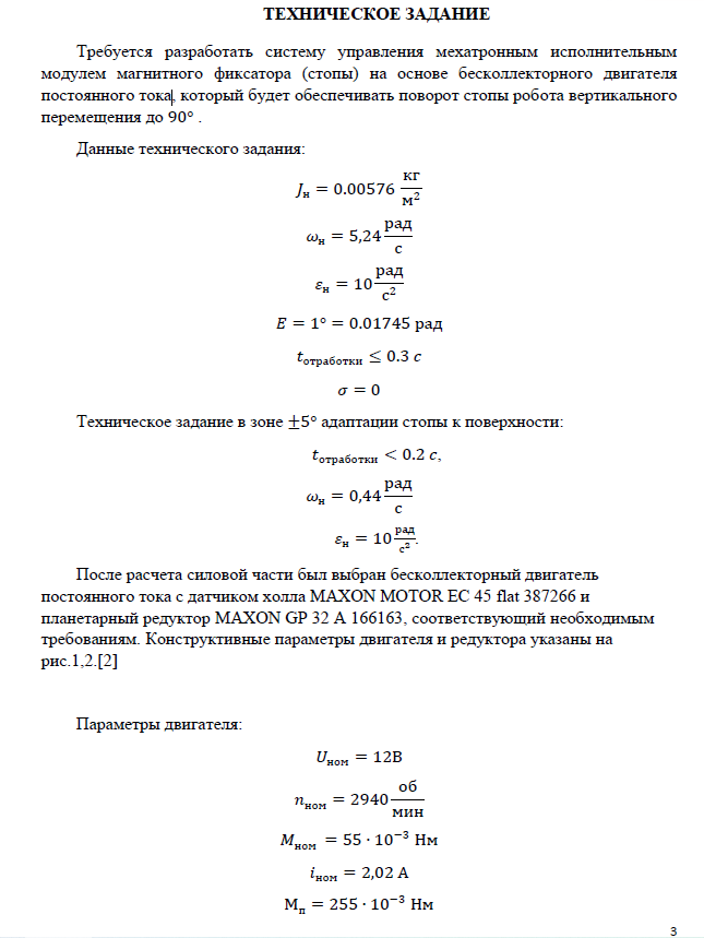 Для студентов МГТУ им. Н.Э.Баумана по предмету Теория автоматического регулирования (ТАР)Система управления мехатронным исполнительным модулем магнитного фиксатора (стопы) на основе бесколлекторного двигателя постоянного токаСистема управления мехатронным исполнительным модулем магнитного фиксатора (стопы) на основе бесколлекторного двигателя постоянного тока