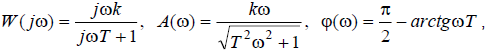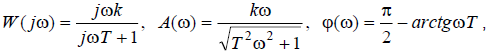 где k,T - постоянные коэффициенты, Определите сдвиг по фазе синусоидальной величины на выходе относительно величины на входе при частоте
